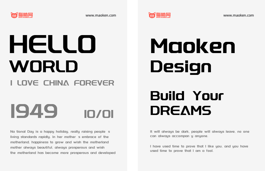 这套字巧妙之处在于,如果你的公司需要设计LOGO,但你不会做LOGO设计,你可以把字打出来,调个间距,调个颜色,国际化立马飙升!