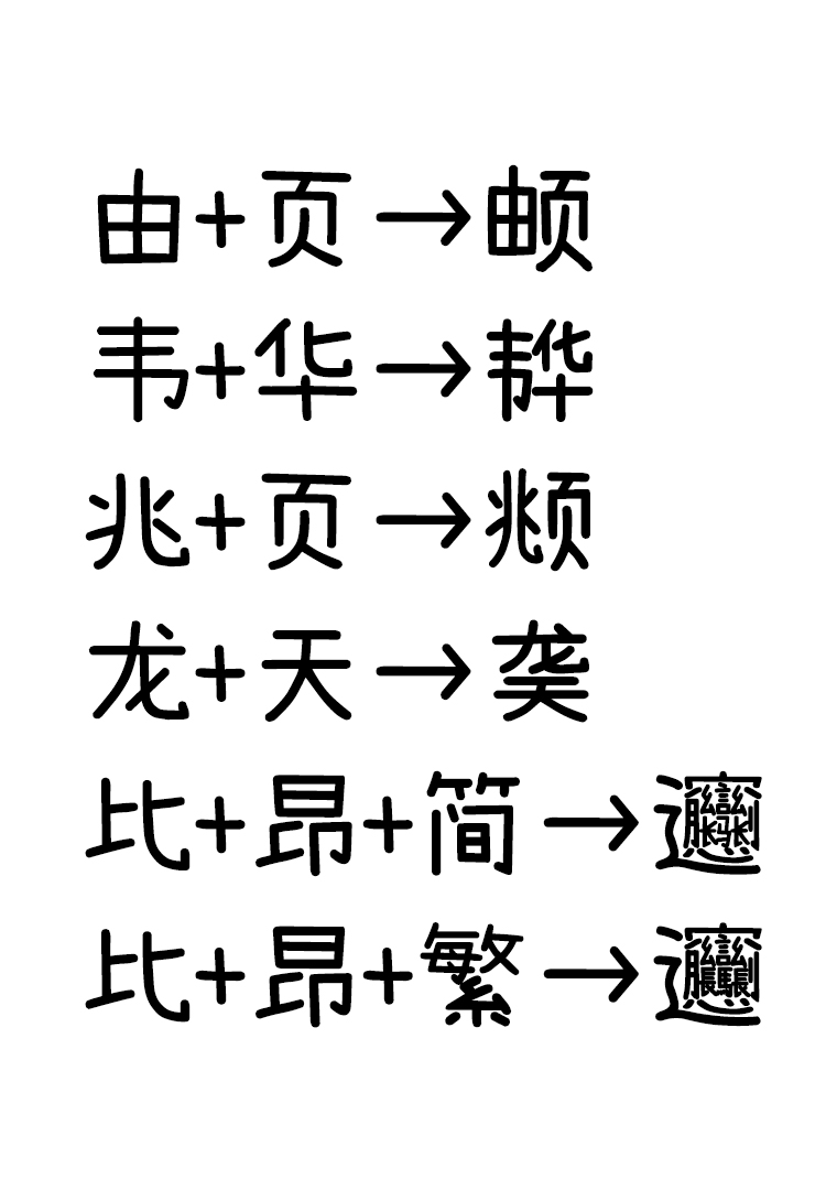 但是,这款可爱的开源字体,仍然缺少一部分简体字,这对于大陆的用户来说,可能会造成一些不便。在这样的背景下,国内设计师“落霞孤鹜”开始了这个项目,旨在补足濑户字体和内海字体缺少的简体字。落霞孤鹜利用业余时间将濑户/内海字体原有的部件进行拼接和调整,为内海字体补全简体中文汉字。并命名为“内海字体补简”。