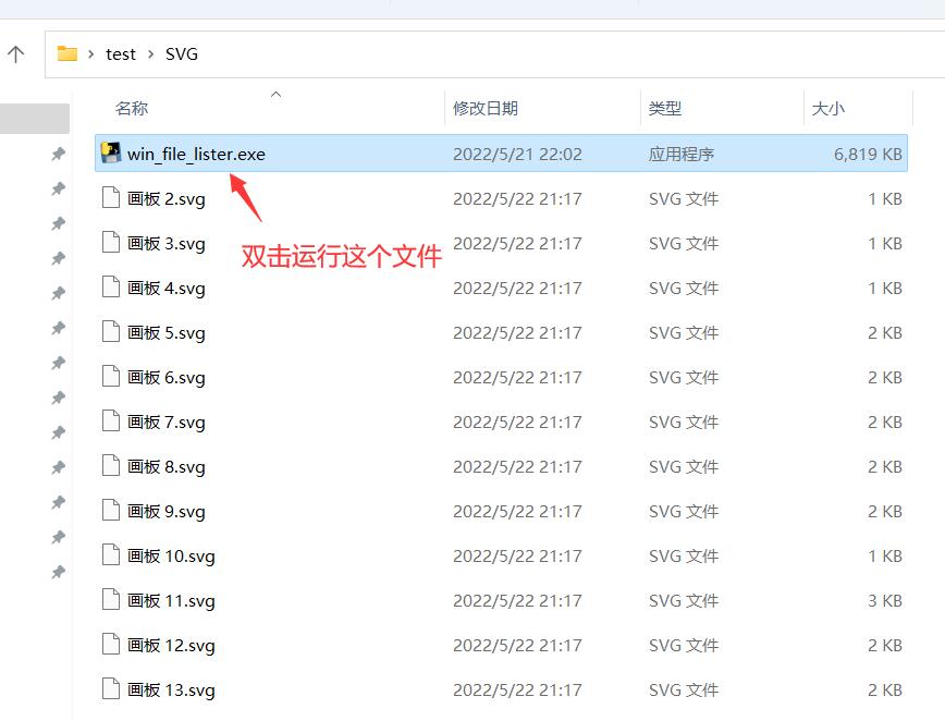 3、把win_file_lister.exe复制放入SVG文件夹里,然后双击运行。