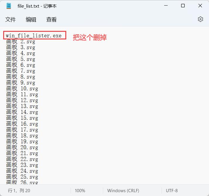 4、用记事本打开file_list.txt文件,把里面的第一行删掉