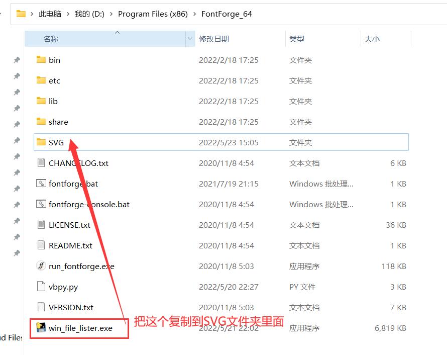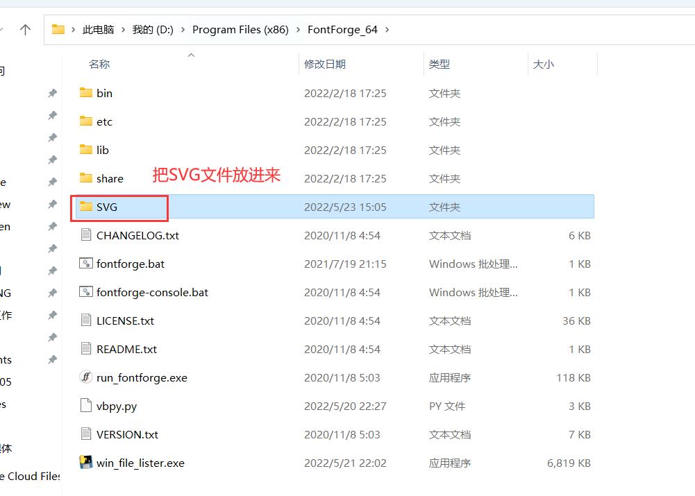 2、把我们刚才生成的SVG文件夹复制到FontForge的目录下