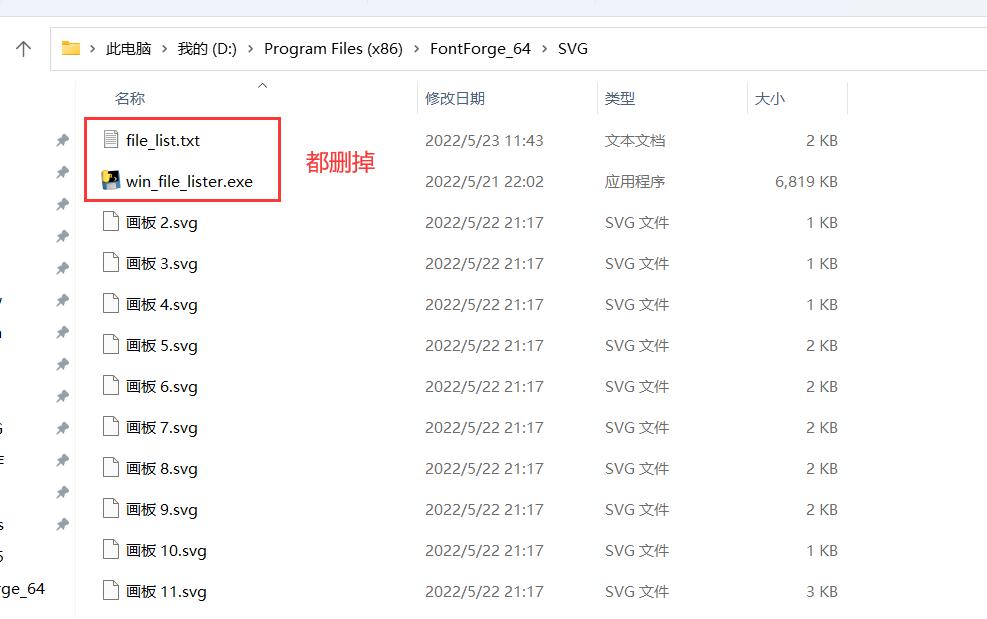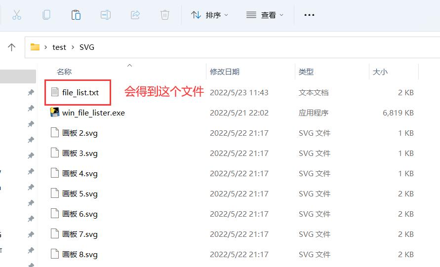 7、然后我们回到SVG文件夹里面,把file_list.txt和win_file_lister.exe这两个文件删除。